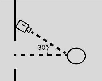 Угол горизонтального отклонения не должен превышать 30°. Горизонтальное отклонение — это отклонение оптической оси видеокамеры от вектора движения основного потока объектов распознавания.