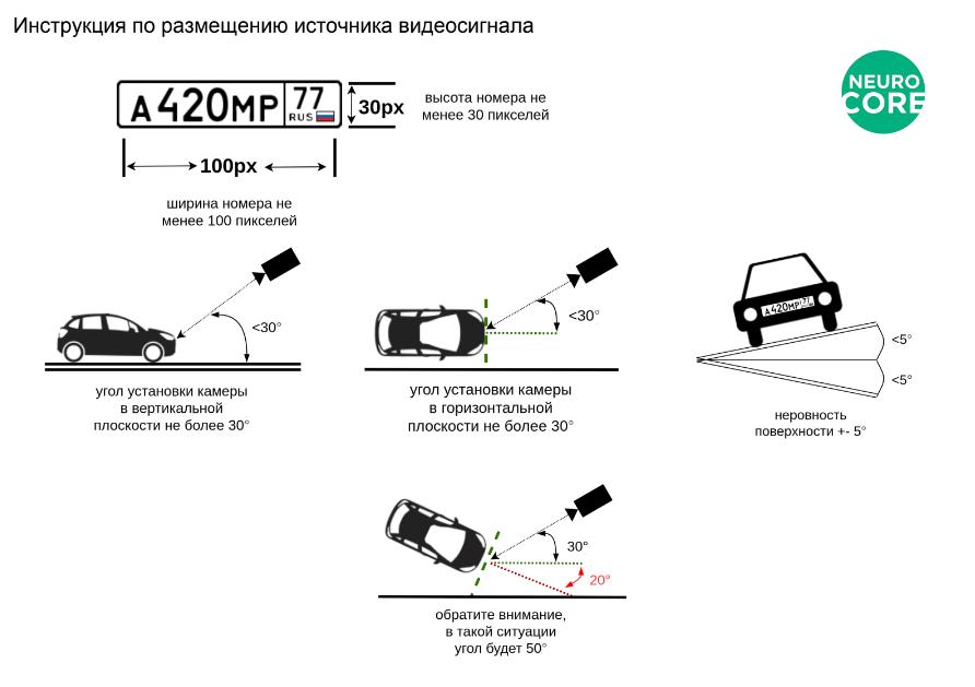 - Мы рекомендуем располагать камеру ниже, чем фары авто для избежания засветов. То есть камера должна смотреть снизу вверх на